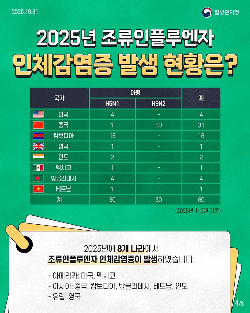 - 251조류인플루엔자(AI), 사람도 감염될 수 있습니다!2025년 11월 04일11