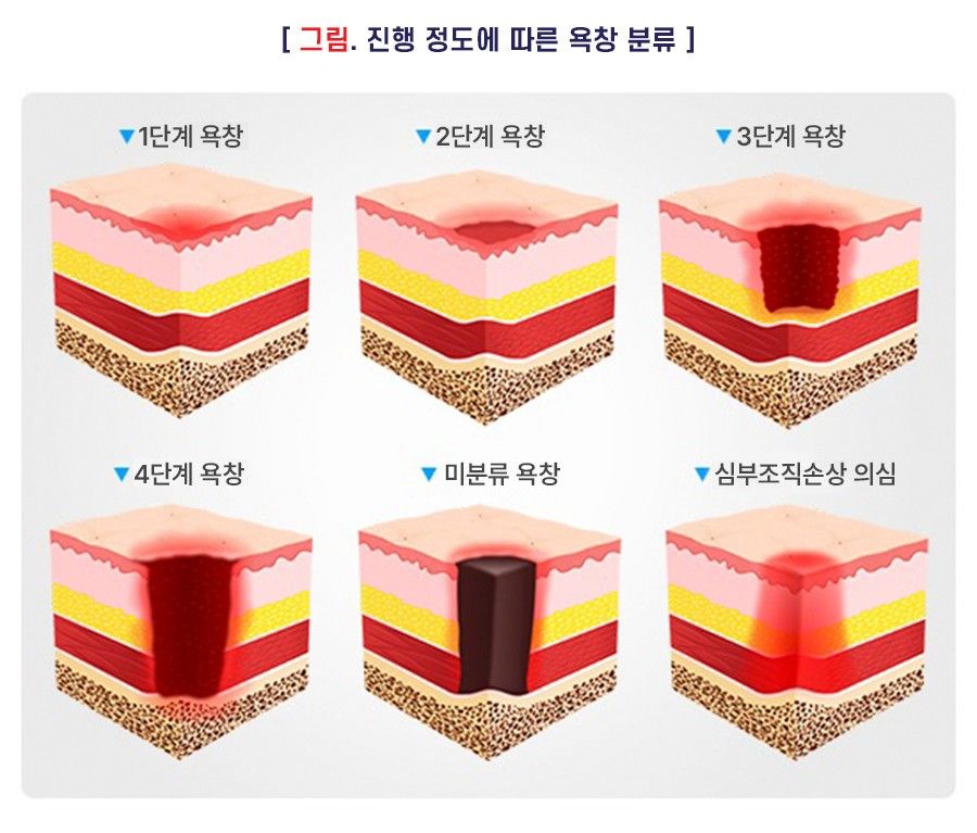 욕창은 임상 소견에 따라 4단계로 구분합니다.