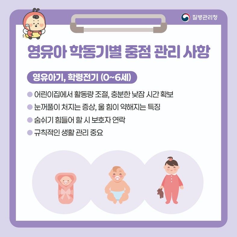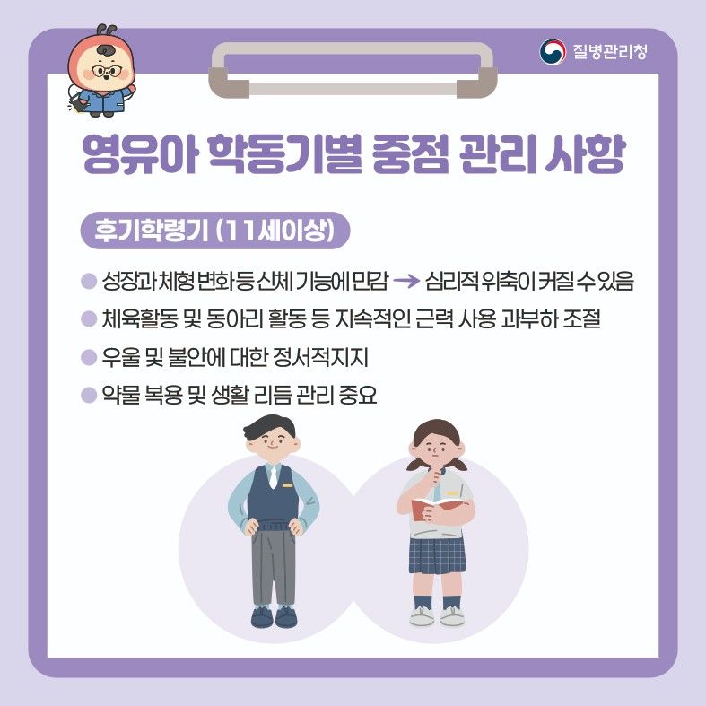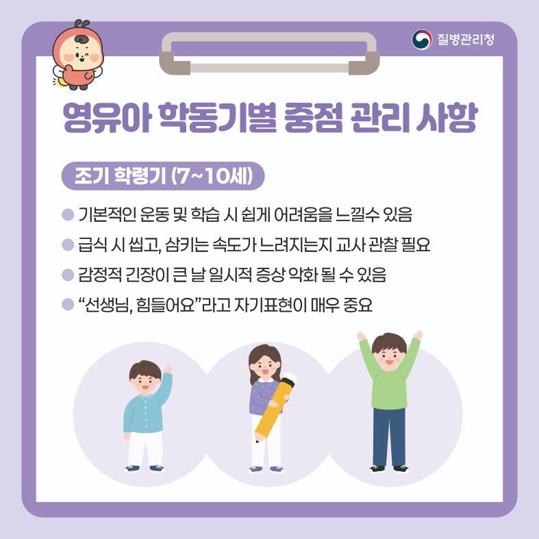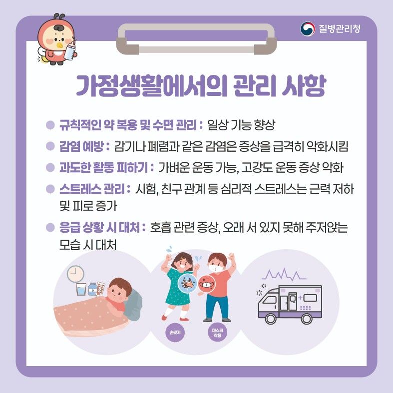 중증근무력증 영유아 학동기별 중점 관리 사항