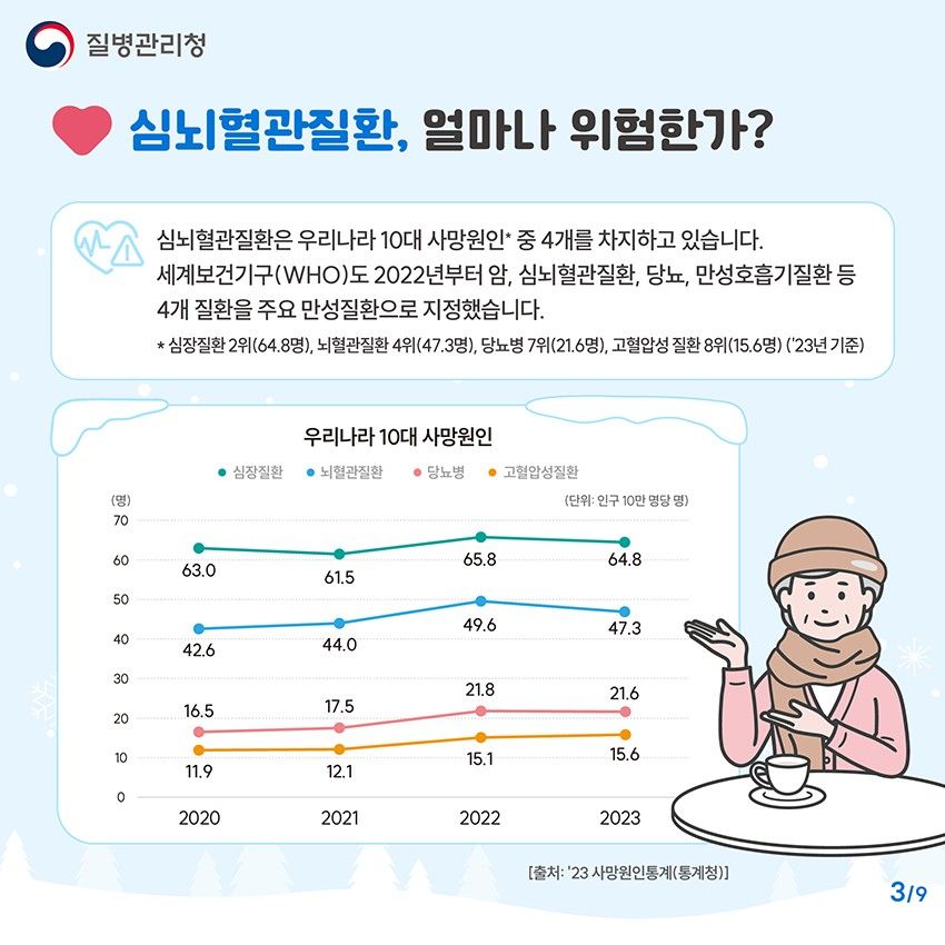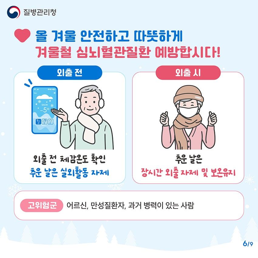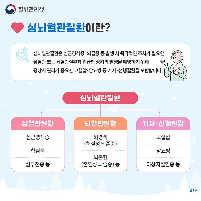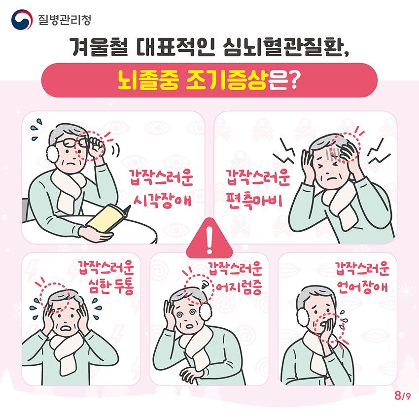 [심뇌혈관질환] 기온 뚝, 겨울 불청객 '심근경색증·뇌졸중' 조기증상 알아두기!