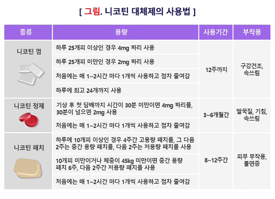 3) 궐련형 전자담배를 사용하는 경우에도 같은 원칙이 적용됩니다. 약물과 상담을 병합하는 치료가 권고됩니다.