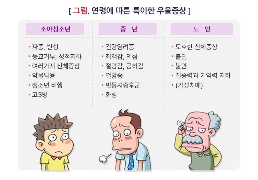 우울감은 나이나 상황에 따라 서로 다른 모습으로 나타날 수 있습니다.