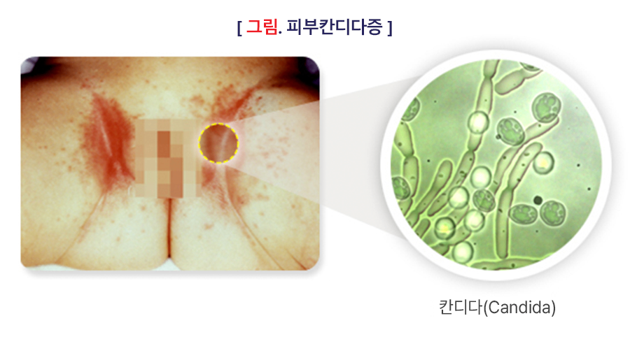 피부가 습하고 짓무른 상태로 밀폐되면 여러 가지 미생물이 잘 증식할 수 있습니다. 특히 칸디다(정상적인 피부, 점막, 분변, 객담, 소변 등에 존재하며 인체에는 해가 없지만 항생제나 스테로이드 제제를 사용한 경우나 인체의 감염방어력이 저하된 경우에는 이상증식을 하여 병을 일으키는 곰팡이균) 곰팡이균이 증식하면서 기저귀 피부염이 악화될 수 있습니다.