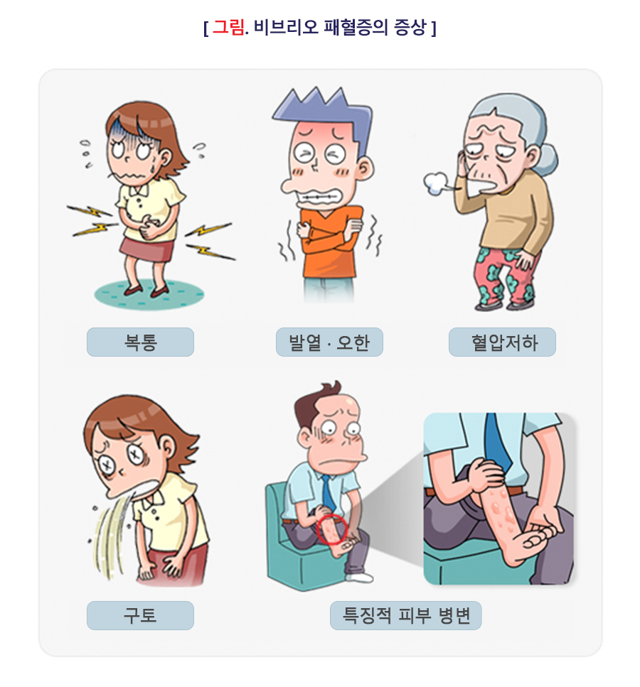 • 이 질병은 여름철 수온이 18~20℃ 이상일 때 주로 발생하며, 날것이나 덜 익힌 어패류 섭취 또는 상처 부위가 바닷물에 닿을 때 감염될 수 있습니다.