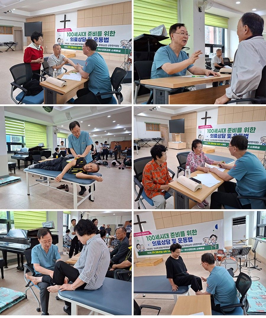 2025년 9월 28일, 여수성광교회에서 여수가온병원의 정형외과 김상채 원장과 순천 선한한의원의 서동효 원장이 함께 의료봉사 활동을 진행하였습니다.