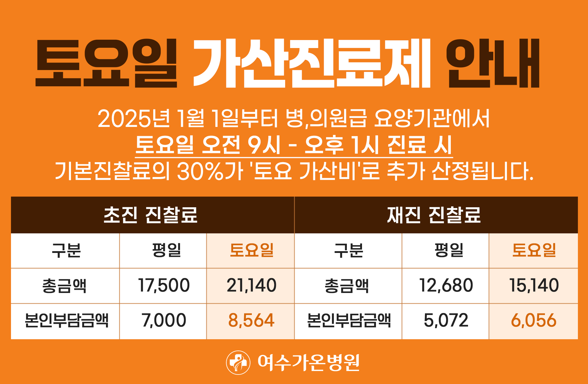 2025년 1월 1일부터 병,의원급 요양기관에서 토요일 오전 9시 - 오후1시 진료 시